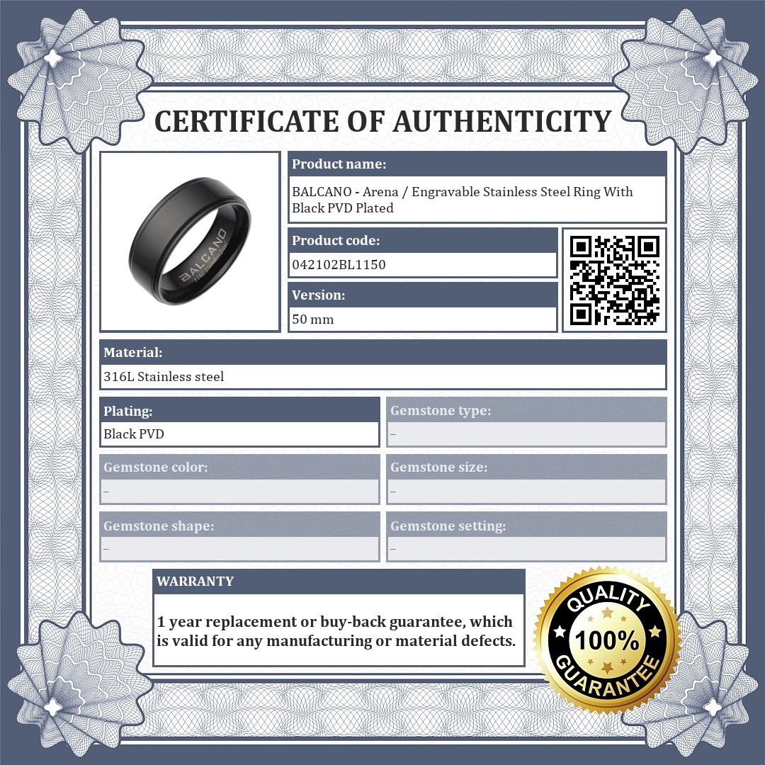 BALCANO - Arena / Engravable Stainless Steel Ring With Black PVD Plated