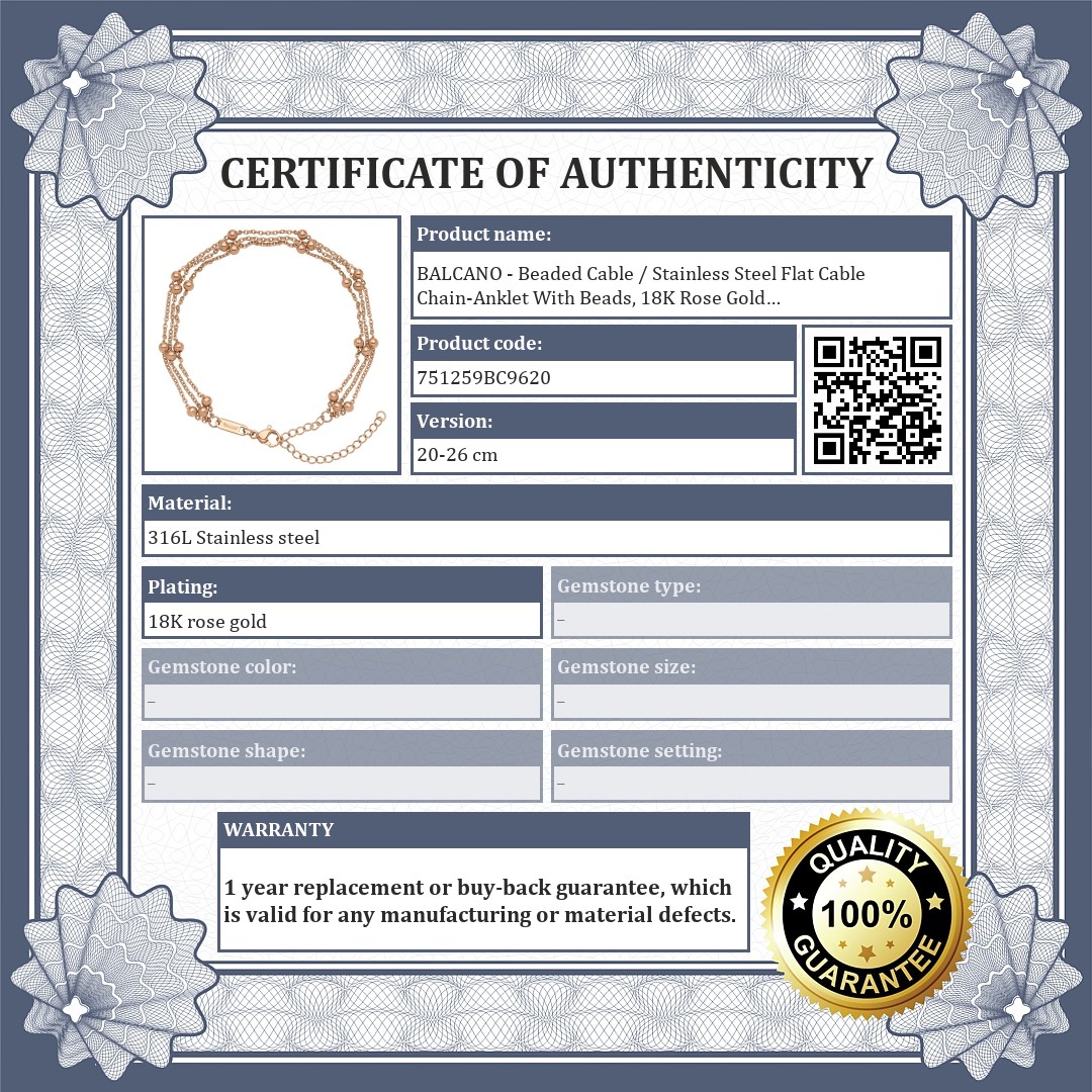 BALCANO - Beaded Cable / Stainless Steel Flat Cable Chain-Anklet With Beads, 18K Rose Gold Plated