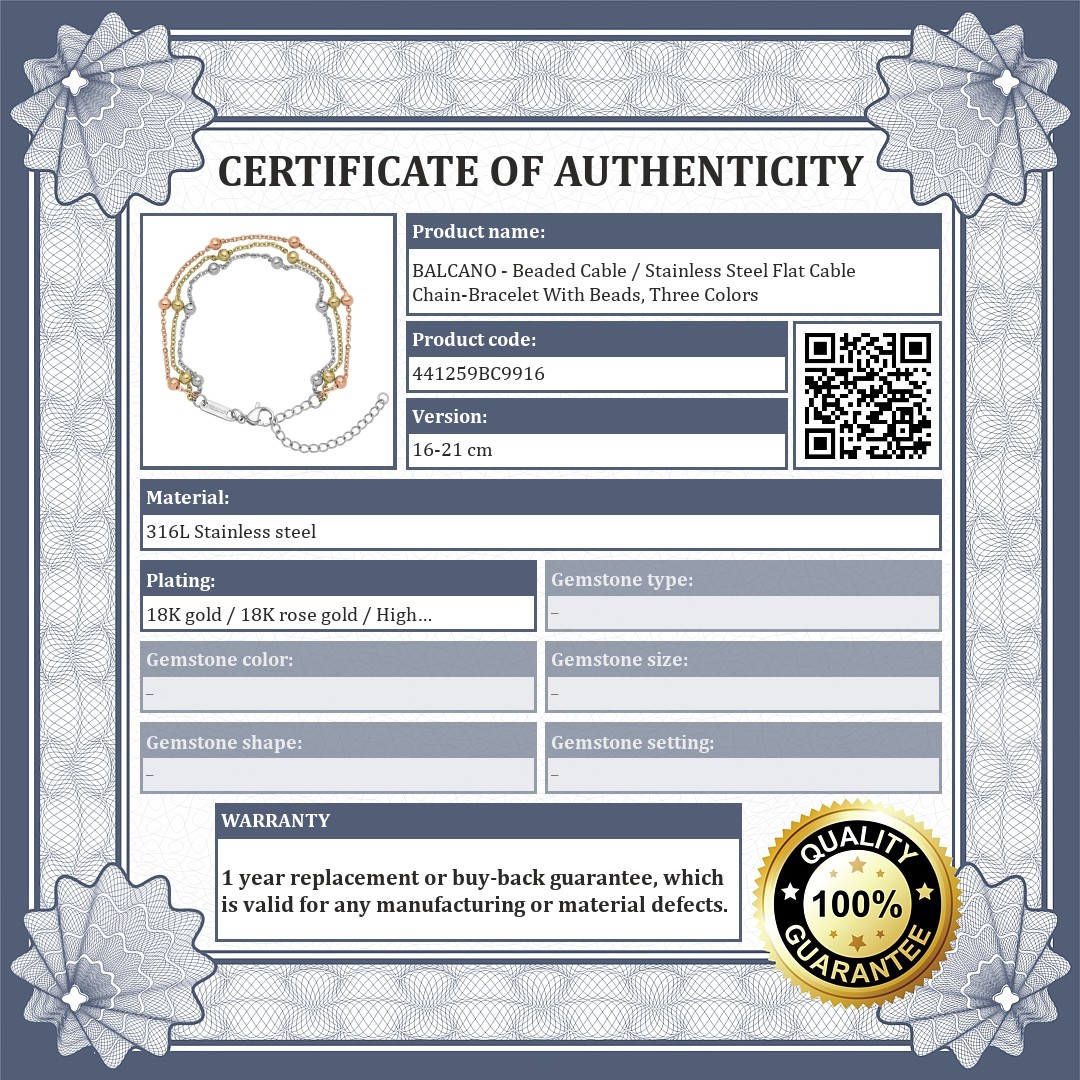 BALCANO - Beaded Cable / Stainless Steel Flat Cable Chain-Bracelet With Beads, Three Colors