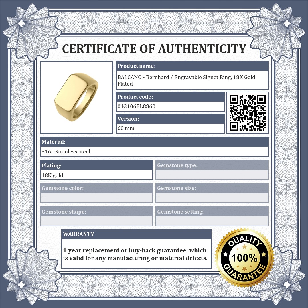 BALCANO - Bernhard / Engravable Signet Ring, 18K Gold Plated