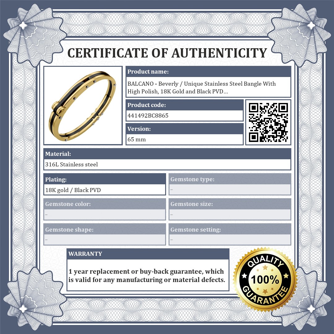 BALCANO - Beverly / Unique Stainless Steel Bangle With High Polish, 18K Gold and Black PVD Plated