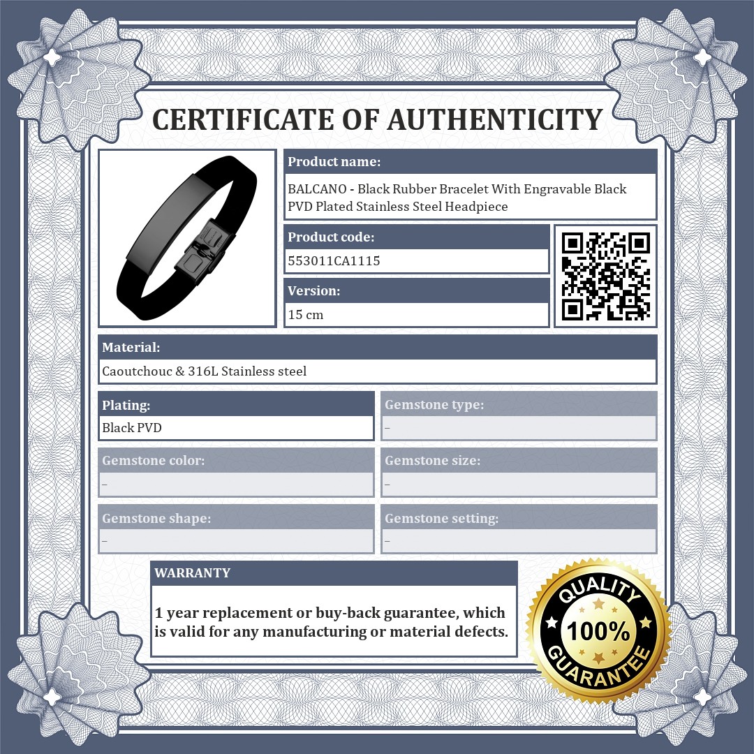 BALCANO - Black Rubber Bracelet With Engravable Black PVD Plated Stainless Steel Headpiece
