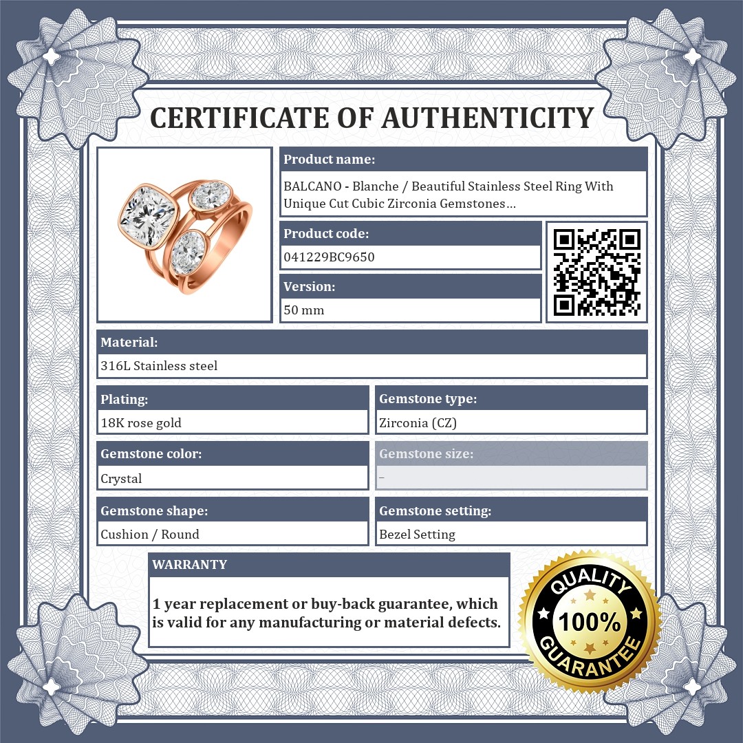 BALCANO - Blanche / Beautiful Stainless Steel Ring With Unique Cut Cubic Zirconia Gemstones And 18K Rose Gold Plated