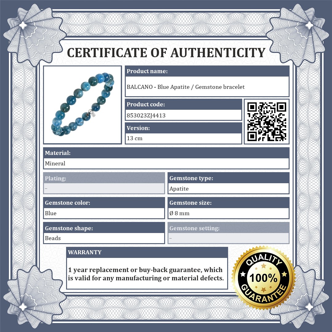 Original blue apatite gemstone bracelet.The authenticity of the gemstones is certified by an official quality certificate.