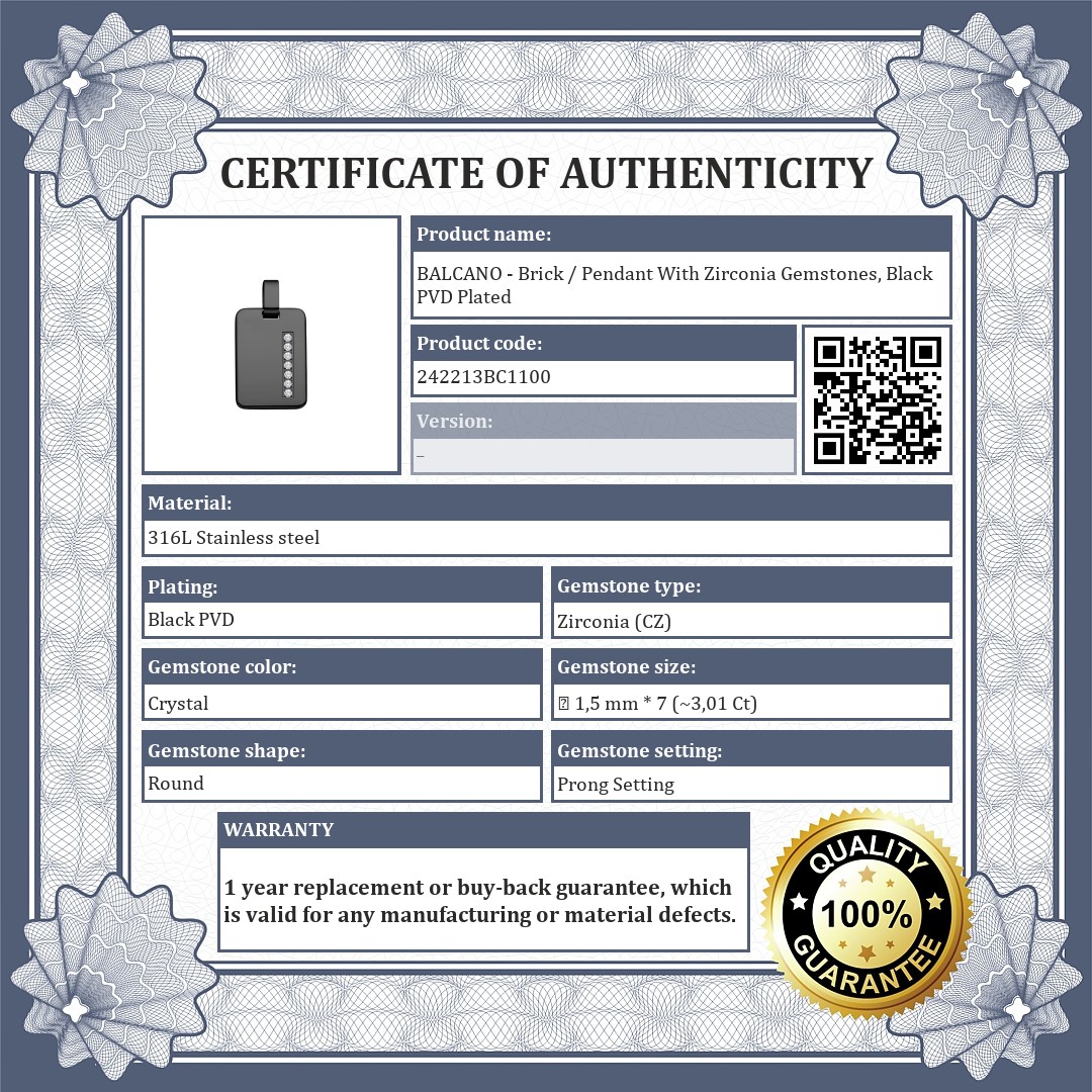 BALCANO - Brick / Pendant With Zirconia Gemstones, Black PVD Plated