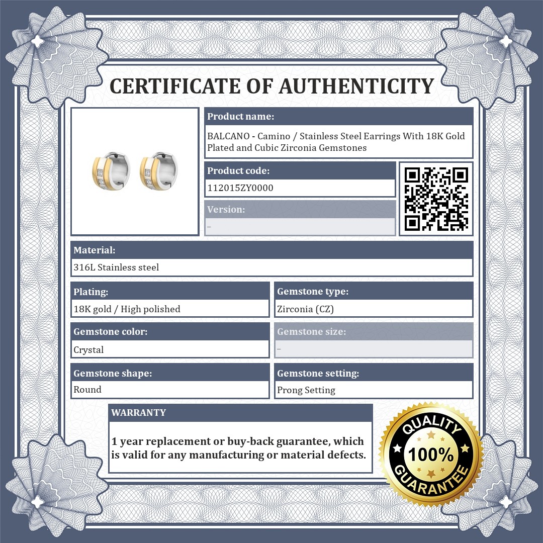 BALCANO - Camino / Stainless Steel Earrings With 18K Gold Plated and Cubic Zirconia Gemstones