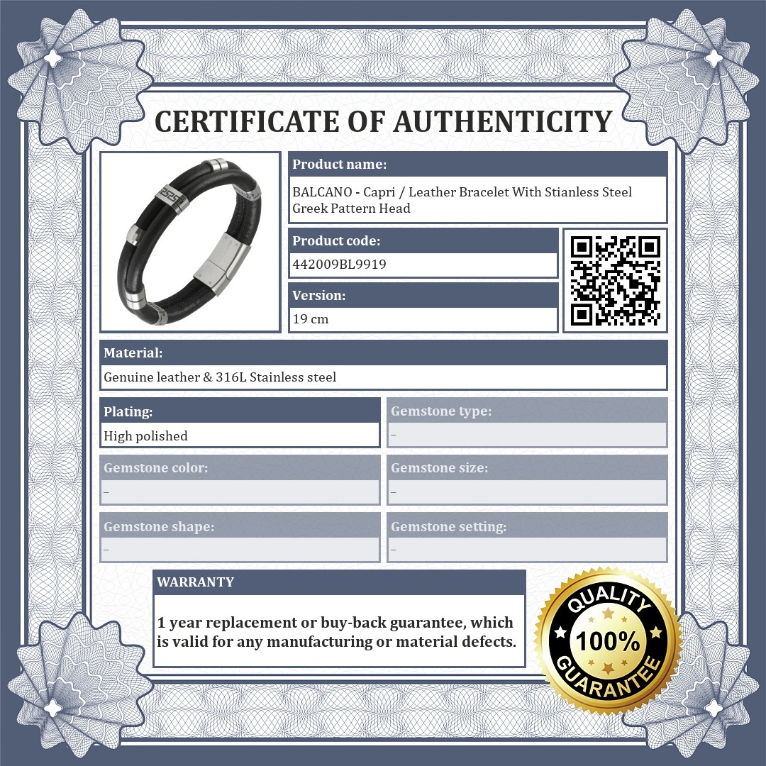 BALCANO - Capri / Leather Bracelet With Stianless Steel Greek Pattern Head