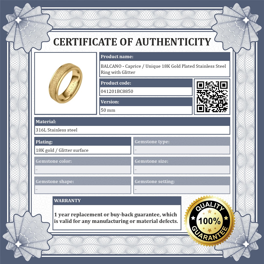 BALCANO - Caprice / Unique 18K Gold Plated Stainless Steel Ring with Glitter