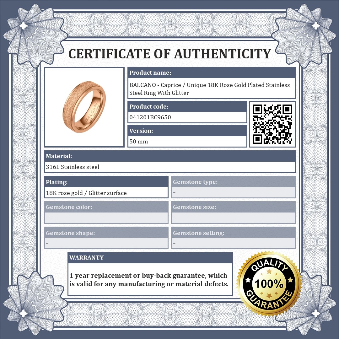 BALCANO - Caprice / Unique 18K Rose Gold Plated Stainless Steel Ring With Glitter