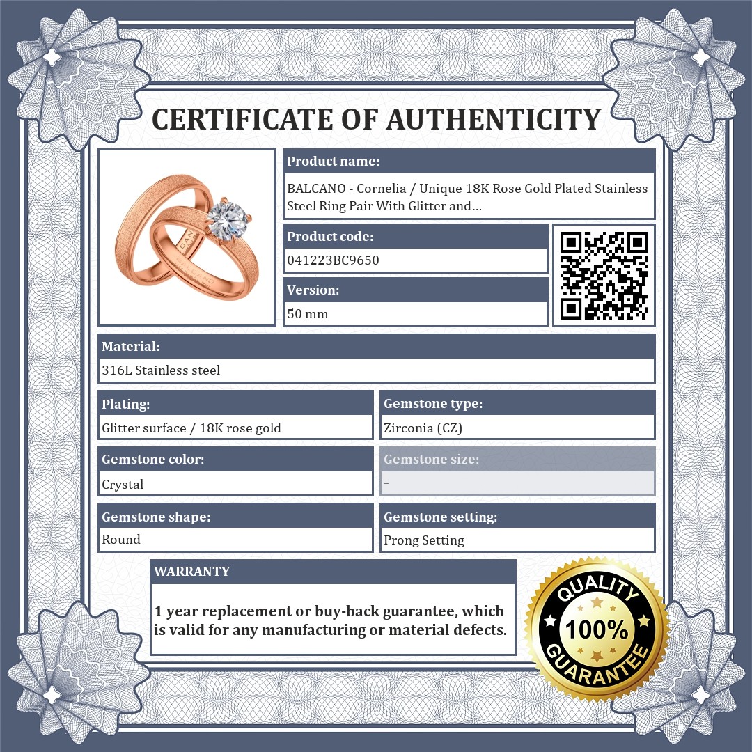BALCANO - Cornelia / Unique 18K Rose Gold Plated Stainless Steel Ring Pair With Glitter and With Zirconia Gemstone