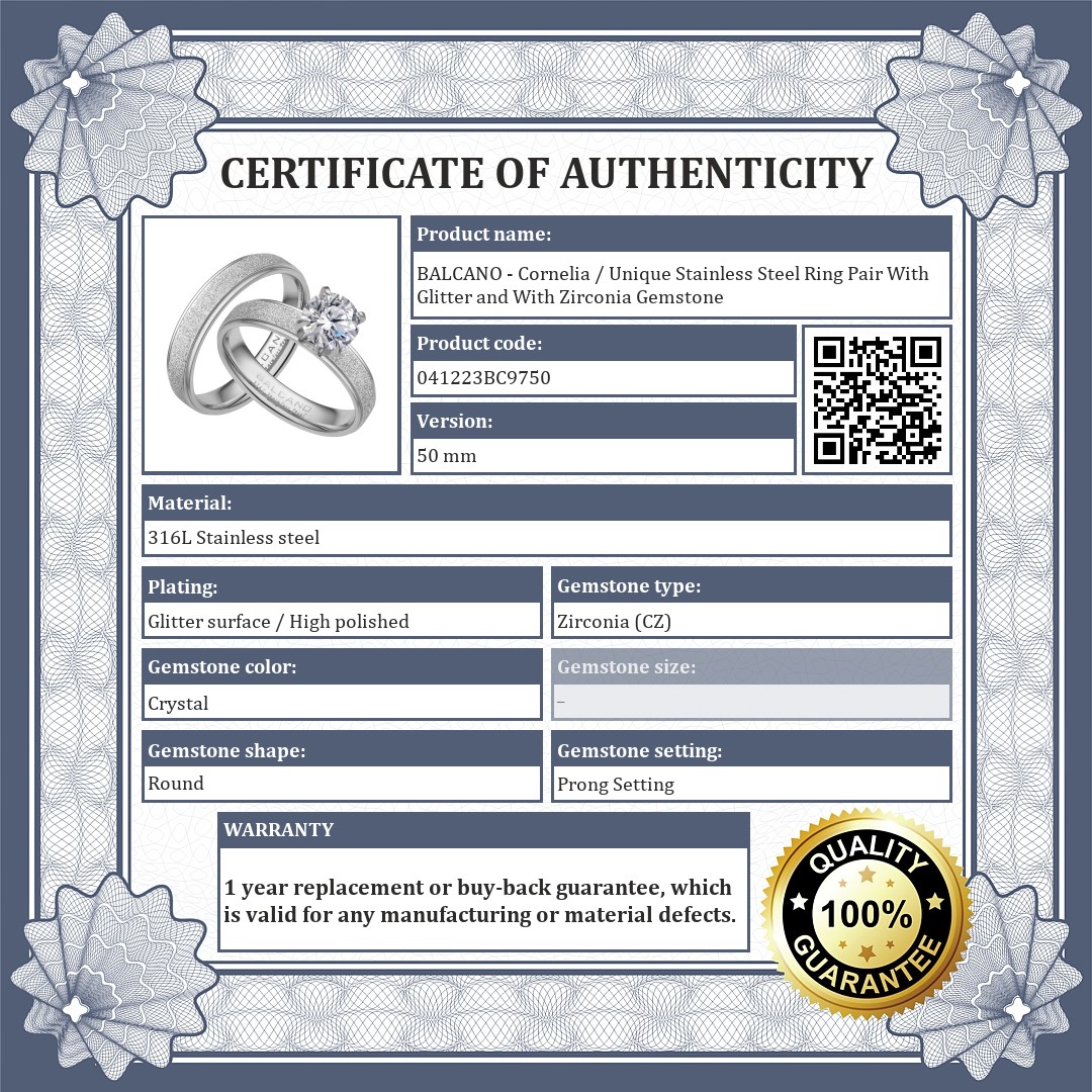 BALCANO - Cornelia / Unique Stainless Steel Ring Pair With Glitter and With Zirconia Gemstone