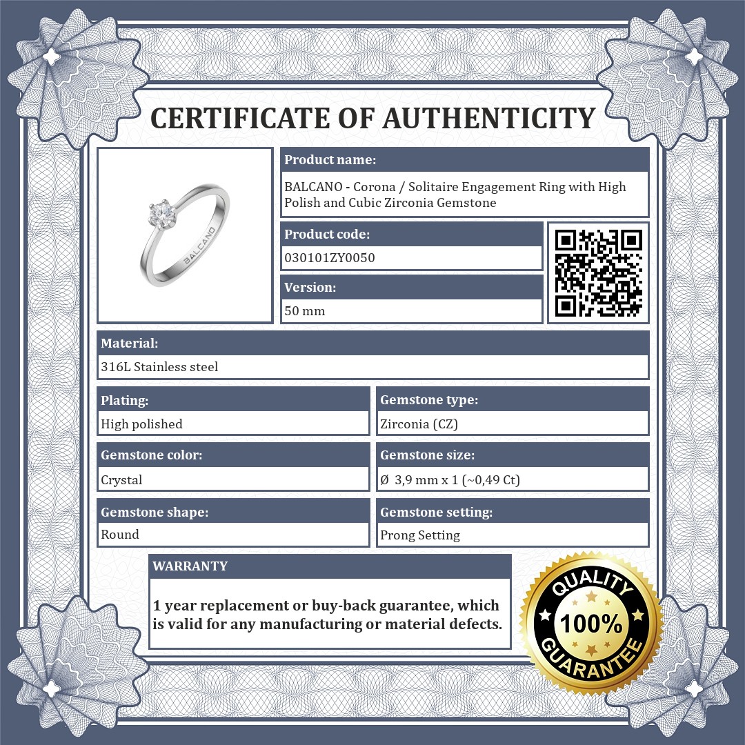 BALCANO - Corona / Solitaire Engagement Ring with High Polish and Cubic Zirconia Gemstone