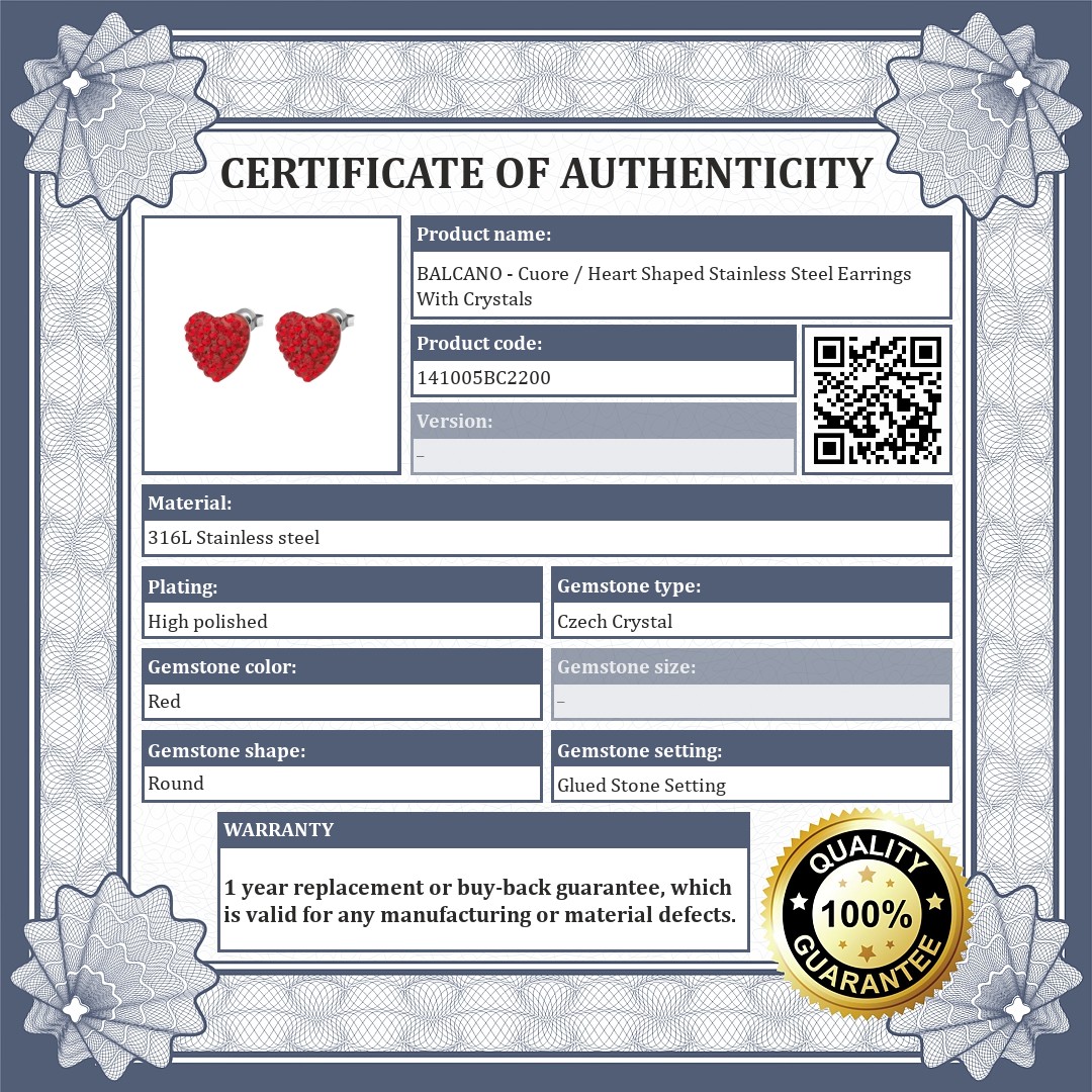 BALCANO - Cuore / Heart Shaped Stainless Steel Earrings With Crystals