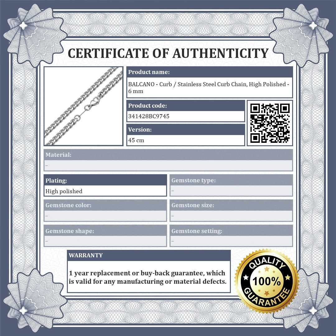 BALCANO - Curb / Stainless Steel Curb Chain, High Polished - 6 mm