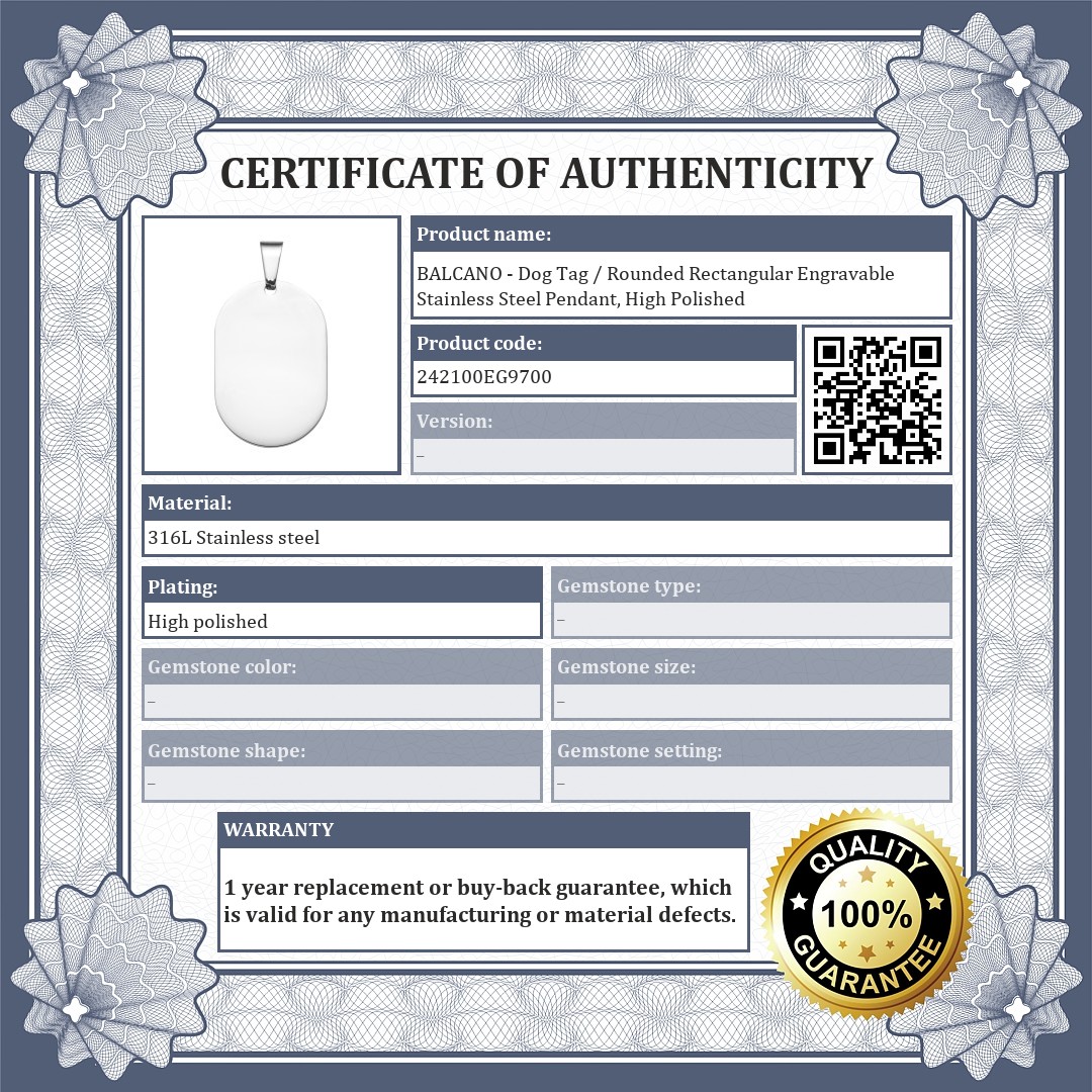 BALCANO - Dog Tag / Rounded Rectangular Engravable Stainless Steel Pendant, High Polished