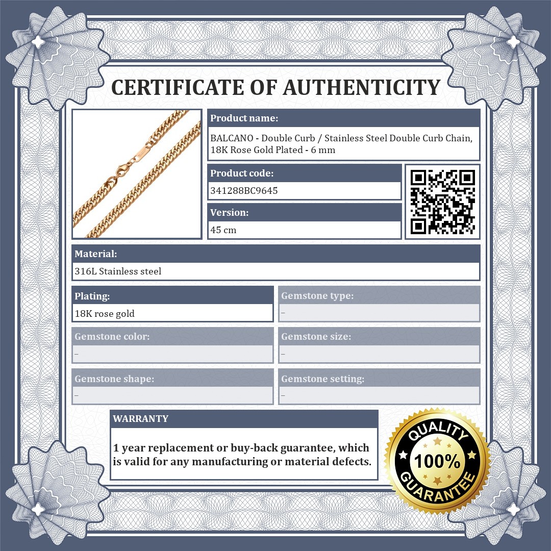 BALCANO - Double Curb / Stainless Steel Double Curb Chain, 18K Rose Gold Plated - 6 mm