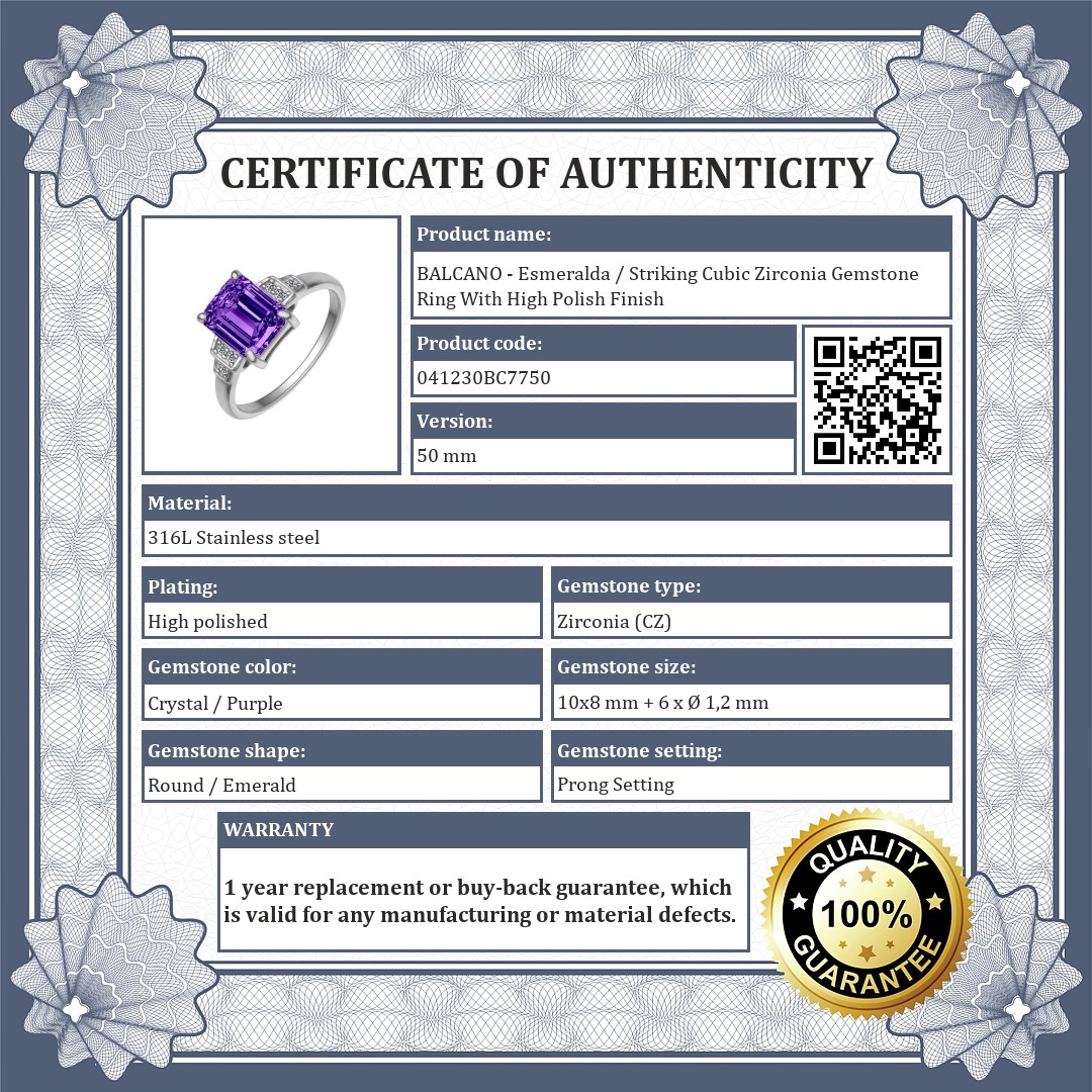BALCANO - Esmeralda / Striking Cubic Zirconia Gemstone Ring With High Polish Finish
