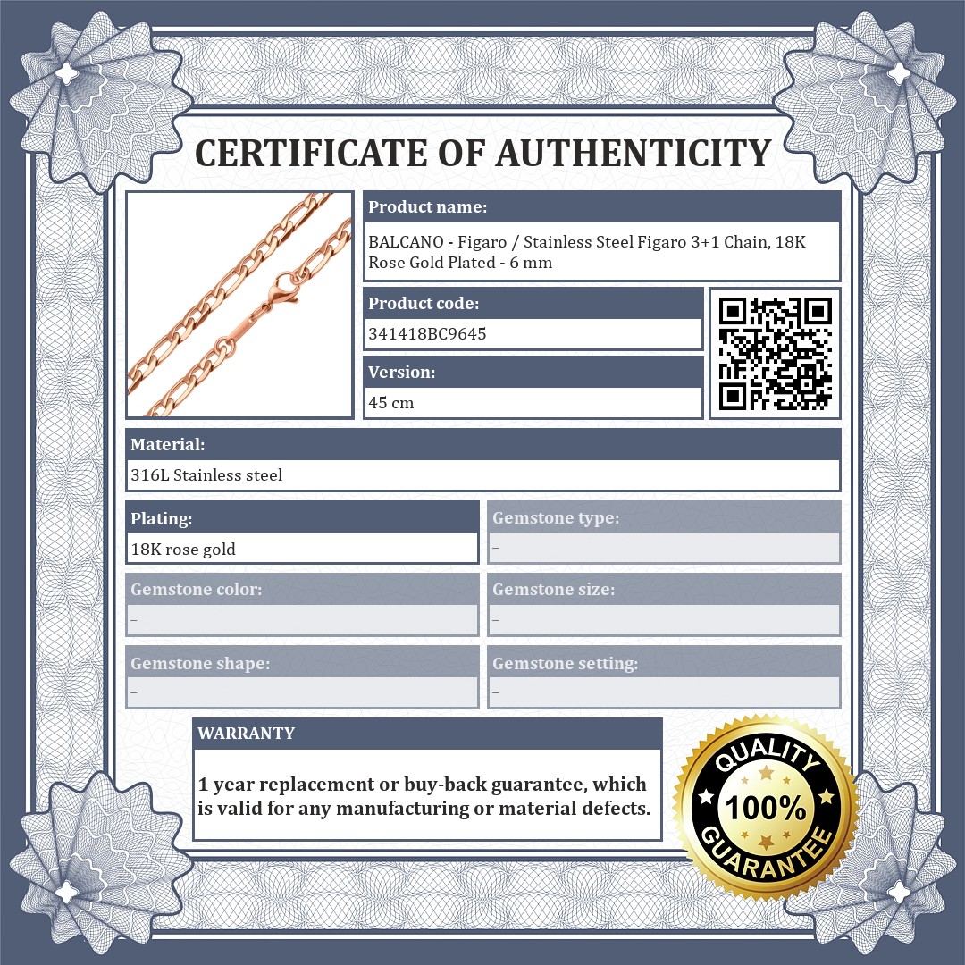 BALCANO - Figaro / Stainless Steel Figaro 3+1 Chain, 18K Rose Gold Plated - 6 mm