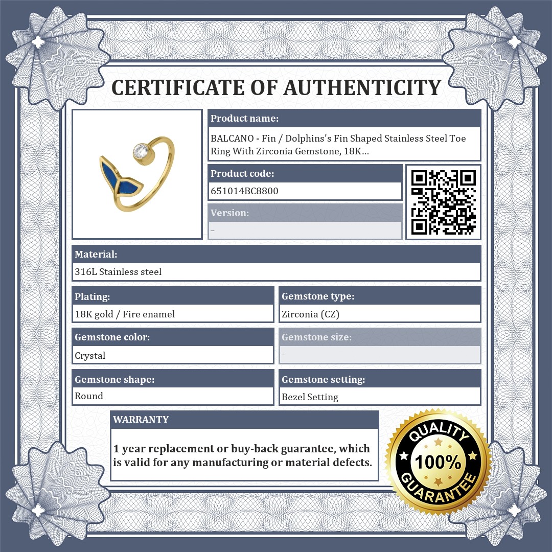 BALCANO - Fin / Dolphins's Fin Shaped Stainless Steel Toe Ring With Zirconia Gemstone, 18K Gold Plated
