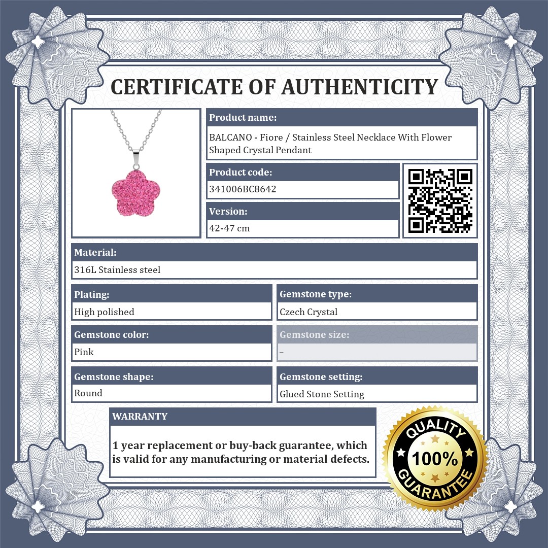 BALCANO - Fiore / Stainless Steel Necklace With Flower Shaped Crystal Pendant