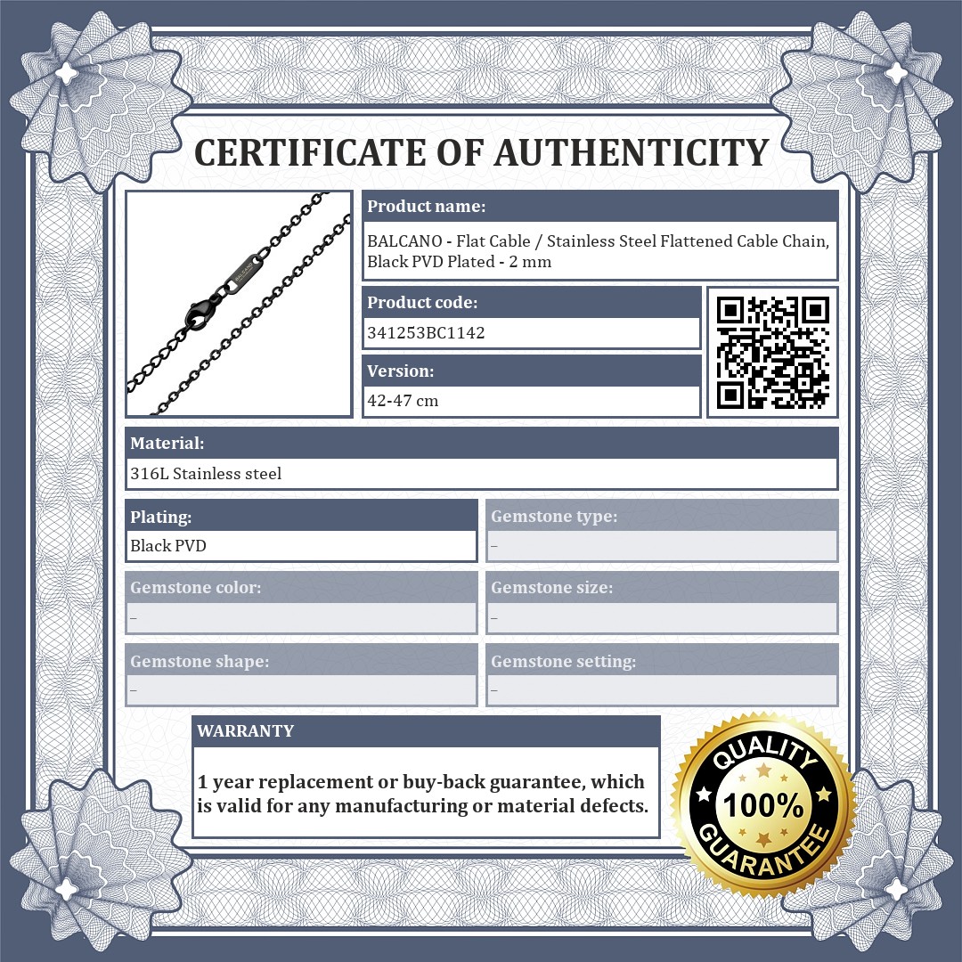 BALCANO - Flat Cable / Stainless Steel Flattened Cable Chain, Black PVD Plated - 2 mm