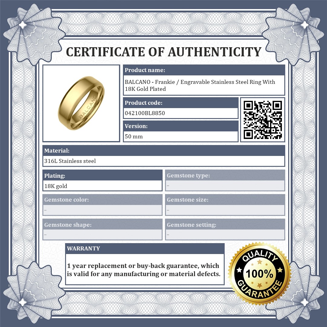 BALCANO - Frankie / Engravable Stainless Steel Ring With 18K Gold Plated