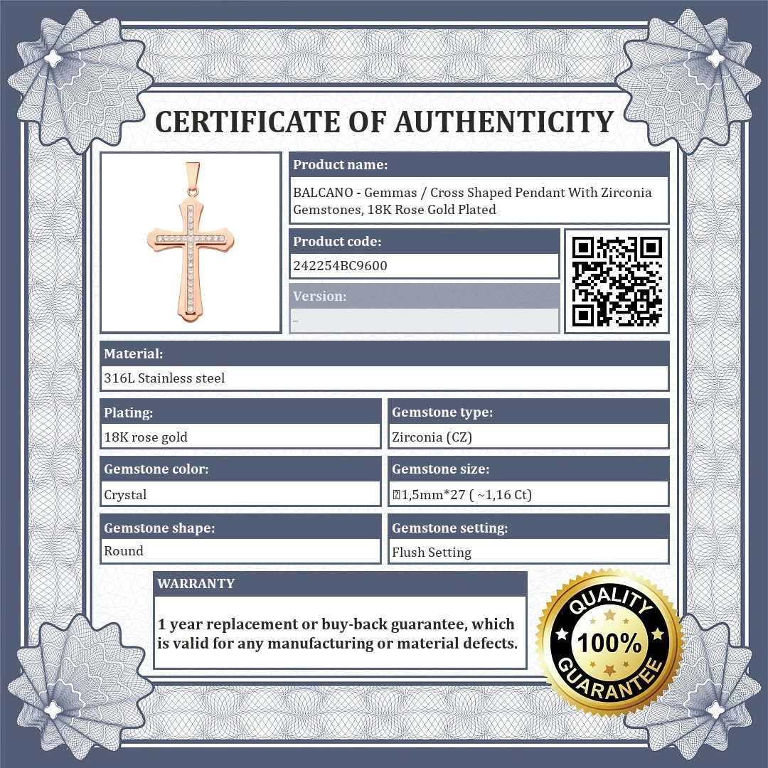 BALCANO - Gemmas / Cross Shaped Pendant With Zirconia Gemstones, 18K Rose Gold Plated