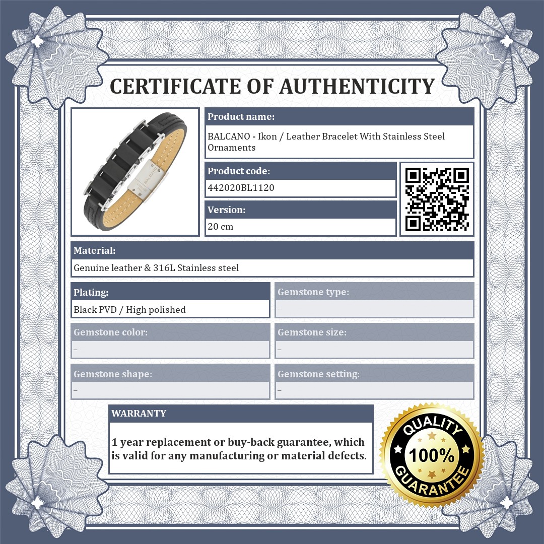 BALCANO - Ikon / Leather Bracelet With Stainless Steel Ornaments
