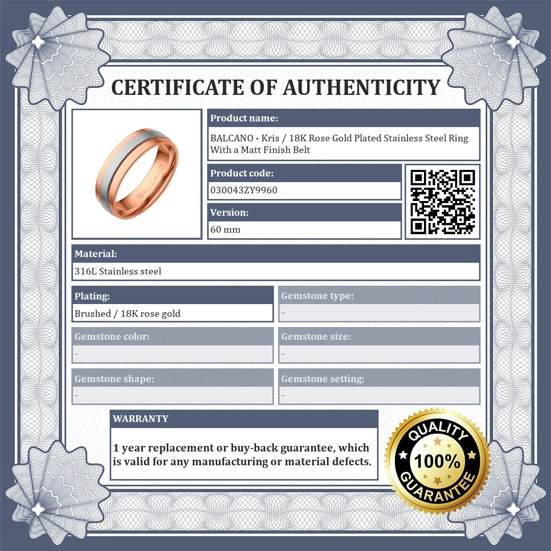 BALCANO - Kris / 18K Rose Gold Plated Stainless Steel Ring With a Matt Finish Belt