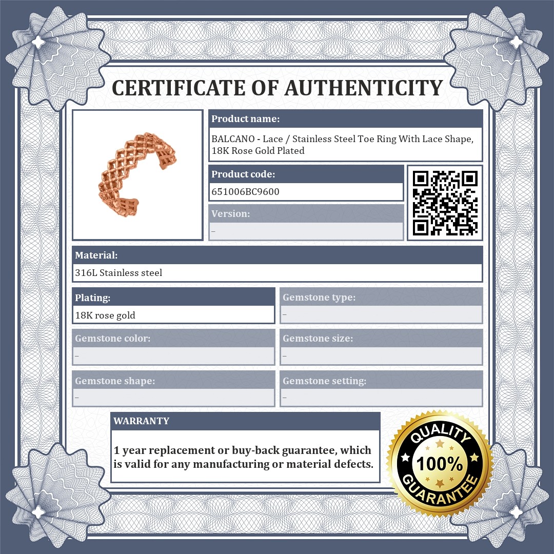 BALCANO - Lace / Stainless Steel Toe Ring With Lace Shape, 18K Rose Gold Plated
