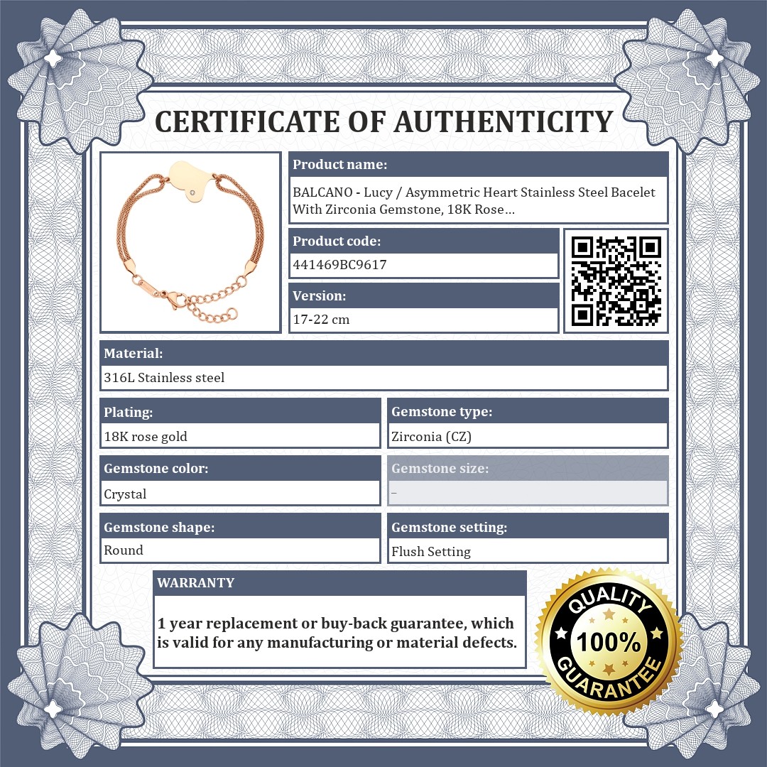 BALCANO - Lucy / Asymmetric Heart Stainless Steel Bacelet With Zirconia Gemstone, 18K Rose Gold Plated