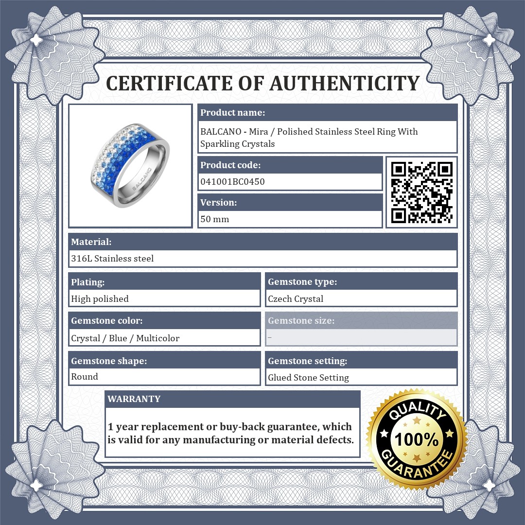 BALCANO - Mira / Polished Stainless Steel Ring With Sparkling Crystals