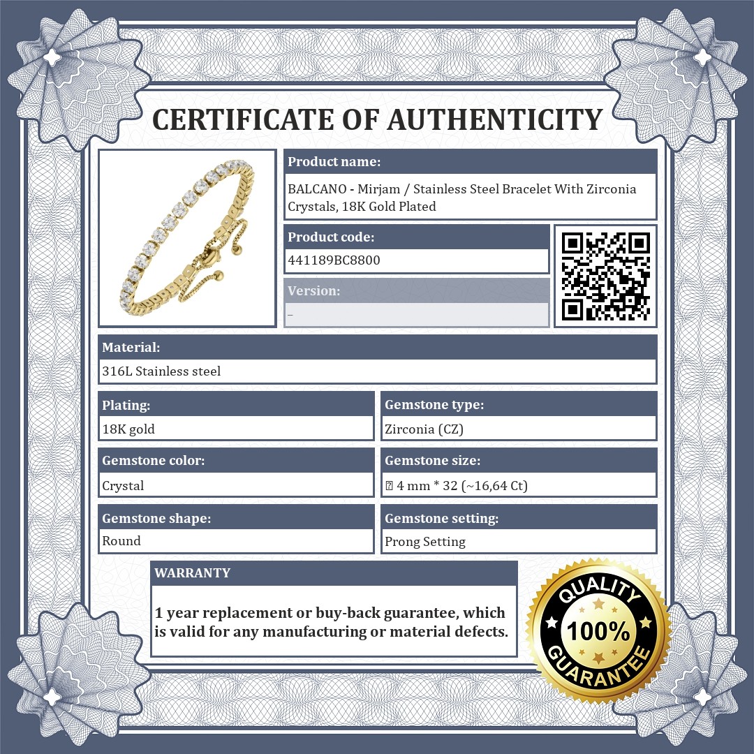 BALCANO - Mirjam / Stainless Steel Bracelet With Zirconia Crystals, 18K Gold Plated