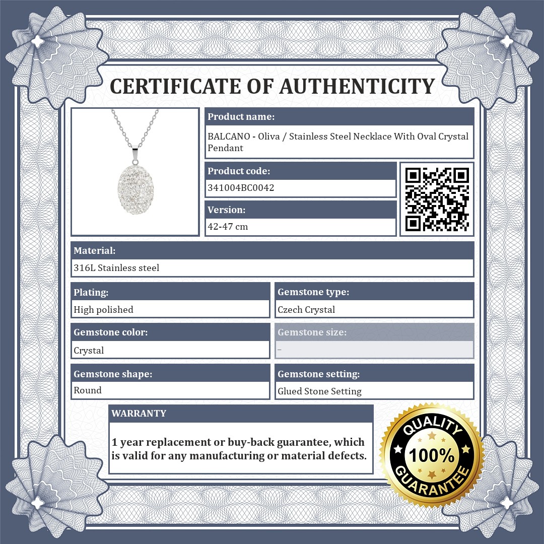 BALCANO - Oliva / Stainless Steel Necklace With Oval Crystal Pendant