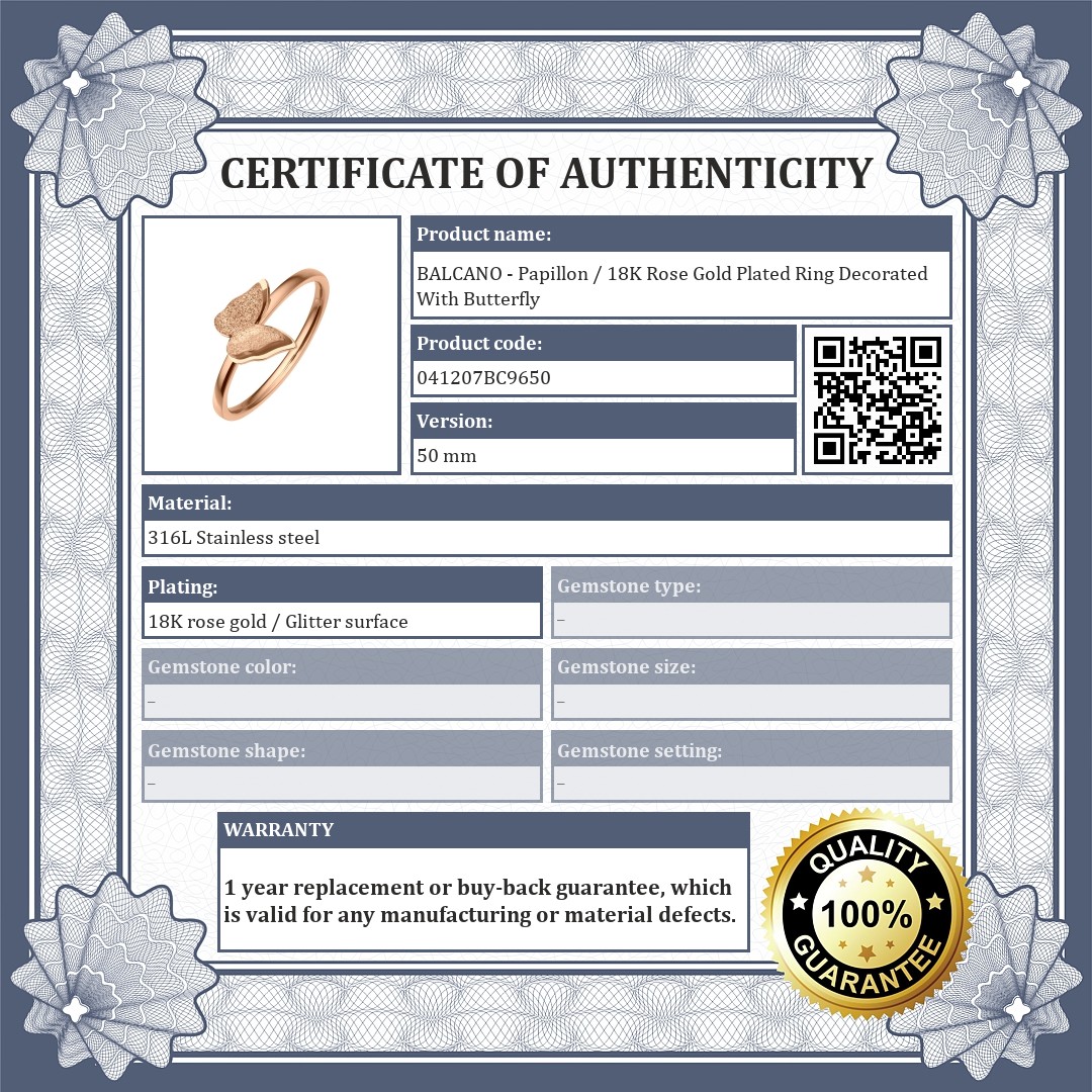 BALCANO - Papillon / 18K Rose Gold Plated Ring Decorated With Butterfly