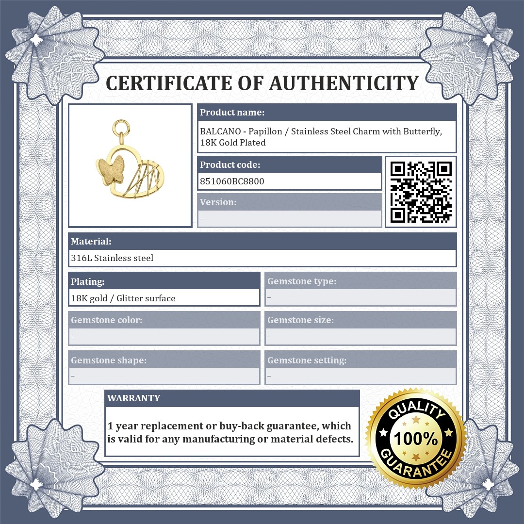 BALCANO - Papillon / Stainless Steel Charm with Butterfly, 18K Gold Plated