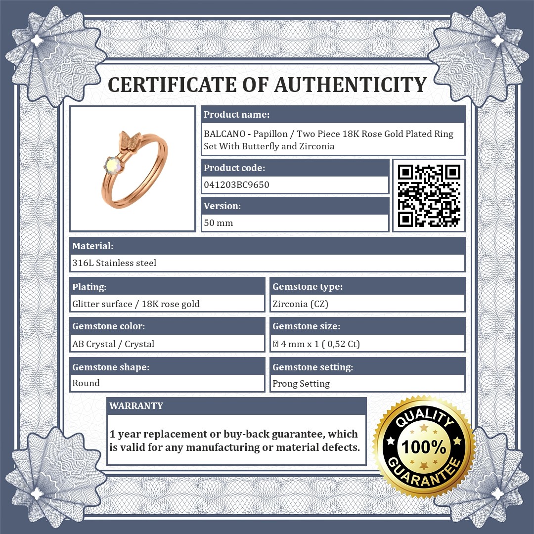 BALCANO - Papillon / Two Piece 18K Rose Gold Plated Ring Set With Butterfly and Zirconia