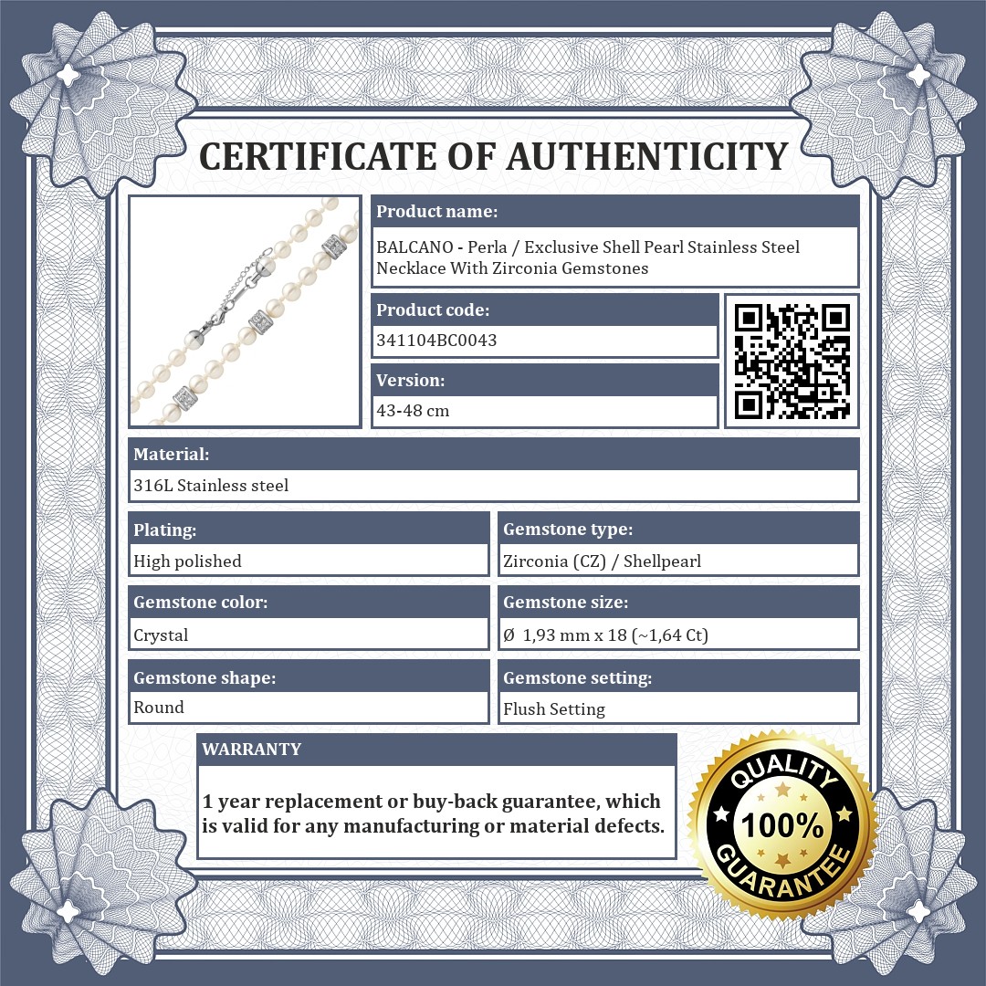 BALCANO - Perla / Exclusive Shell Pearl Stainless Steel Necklace With Zirconia Gemstones (341104BC00)