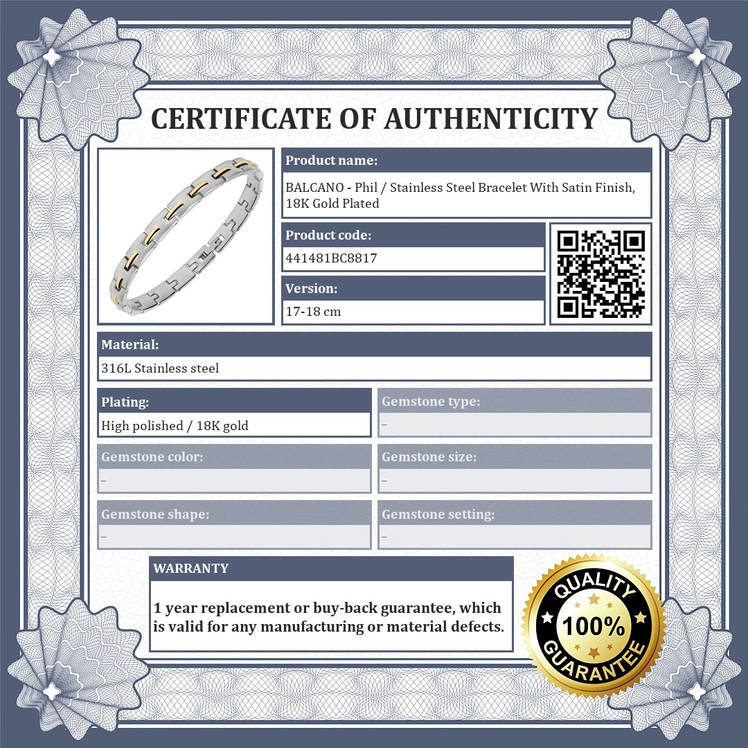 BALCANO - Phil / Stainless Steel Bracelet With Satin Finish, 18K Gold Plated