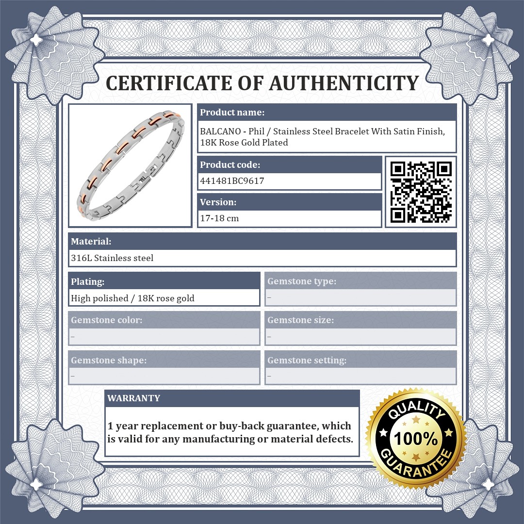 BALCANO - Phil / Stainless Steel Bracelet With Satin Finish, 18K Rose Gold Plated