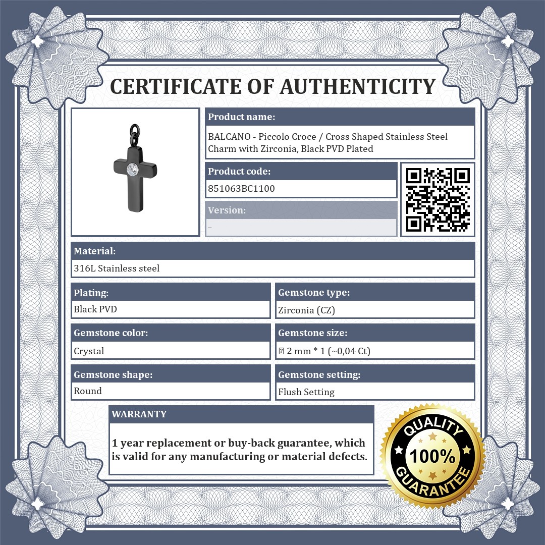 BALCANO - Piccolo Croce / Cross Shaped Stainless Steel Charm with Zirconia, Black PVD Plated