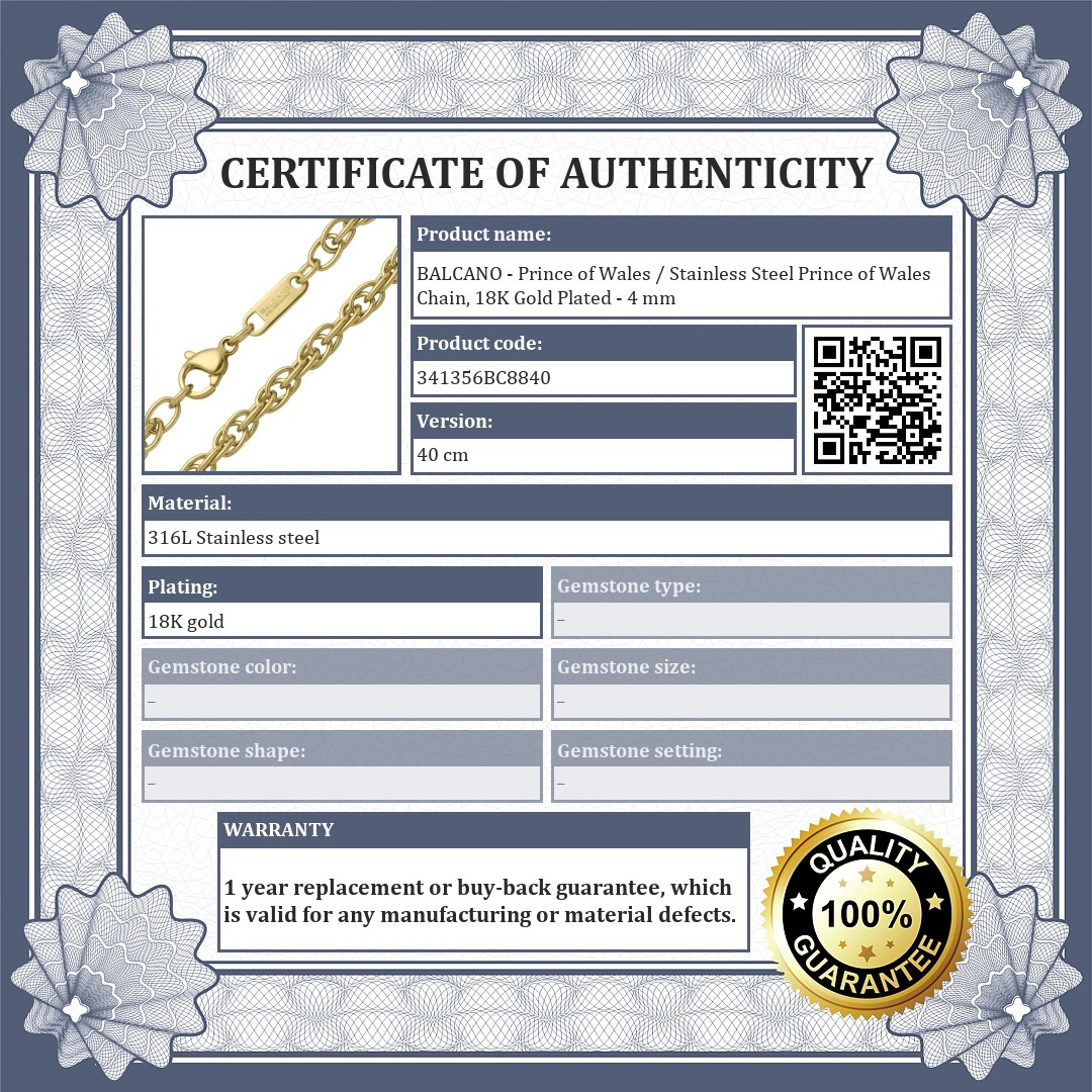 BALCANO - Prince of Wales / Stainless Steel Prince of Wales Jewelry Set Collection 18K Gold Plated - 4 mm