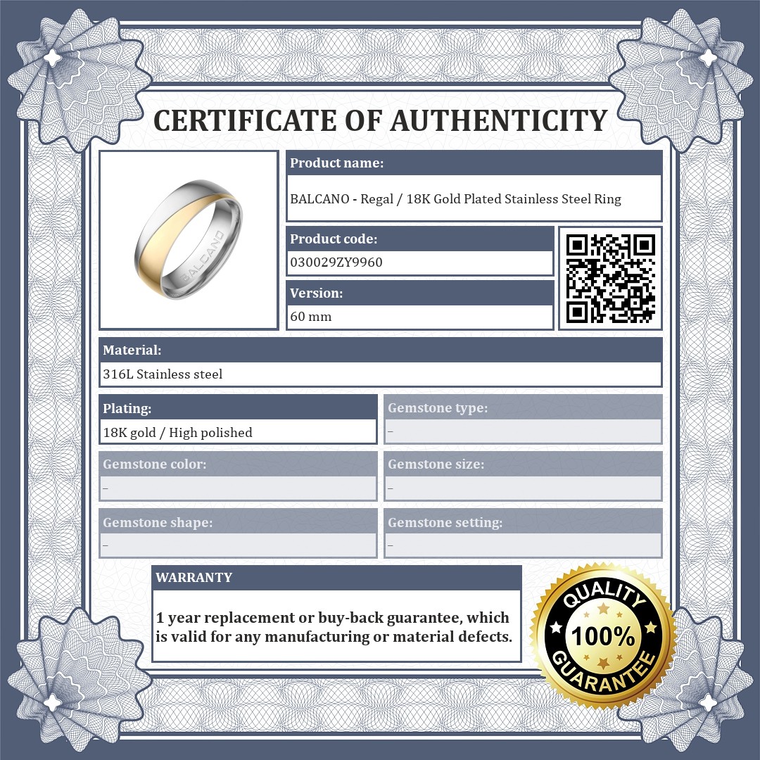 The word regal means princely, which really suits this gorgeous model. High quality anti-allergy 316L stainless steel ring with high polish and 18K gold plated.