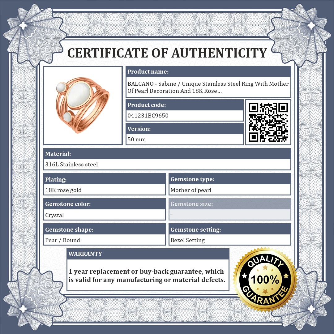 BALCANO - Sabine / Unique Stainless Steel Ring With Mother Of Pearl Decoration And 18K Rose Gold Plated