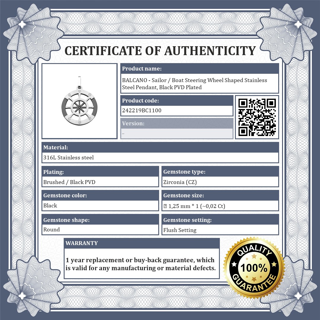BALCANO - Sailor / Boat Steering Wheel Shaped Stainless Steel Pendant, Black PVD Plated