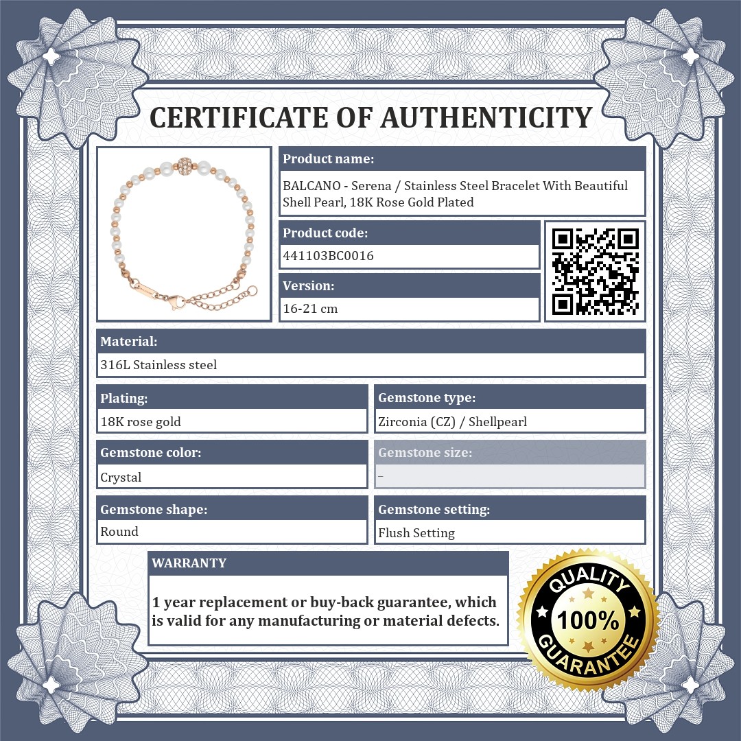 BALCANO - Serena / Stainless Steel Bracelet With Beautiful Shell Pearl, 18K Rose Gold Plated