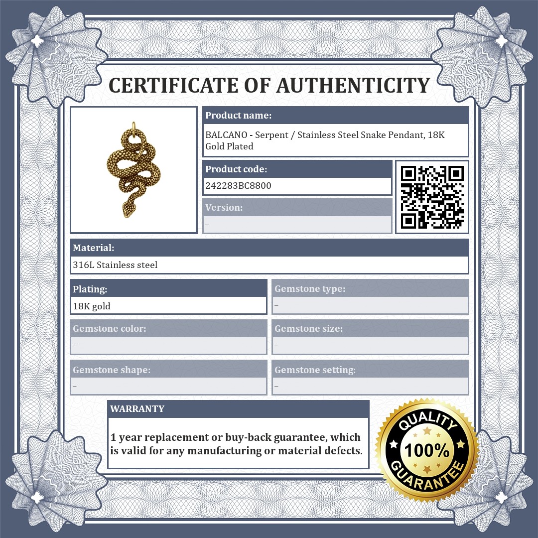 BALCANO - Serpent / Stainless Steel Snake Pendant, 18K Gold Plated