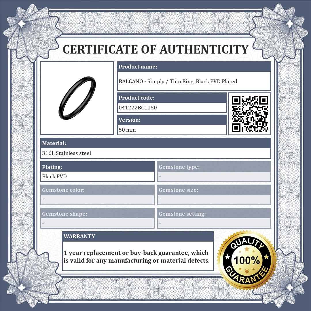 BALCANO - Simply / Thin Ring, Black PVD Plated