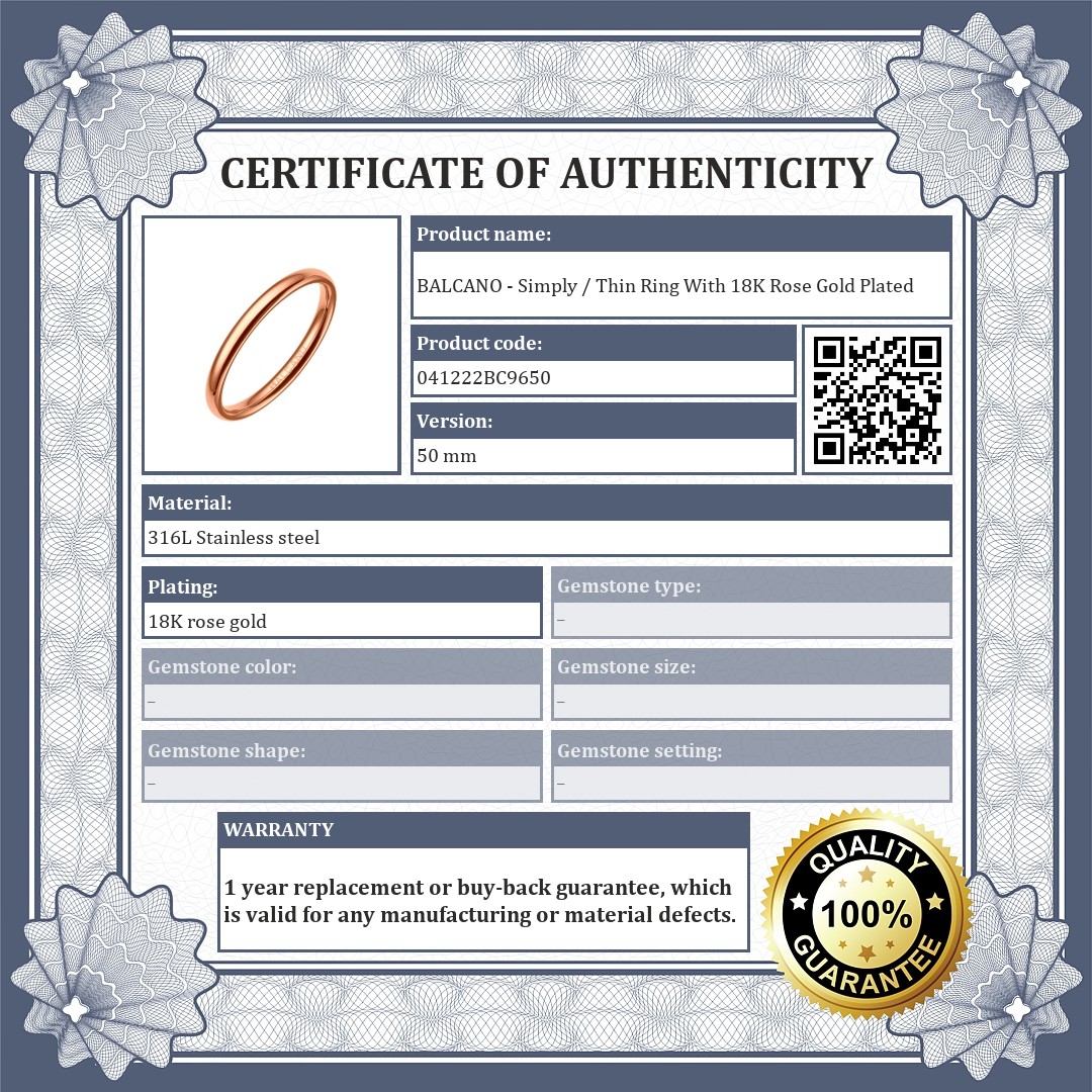 BALCANO - Simply / Thin Ring With 18K Rose Gold Plated