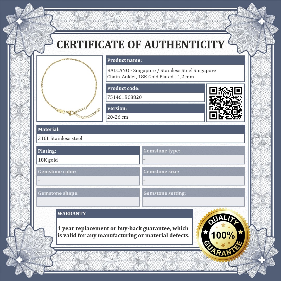 BALCANO - Singapore / Stainless Steel Singapore Chain-Anklet, 18K Gold Plated - 1,2 mm